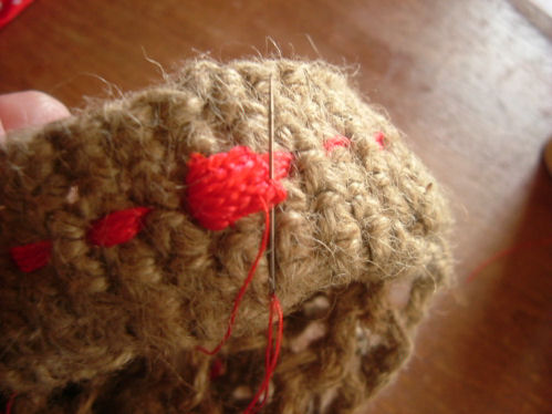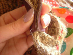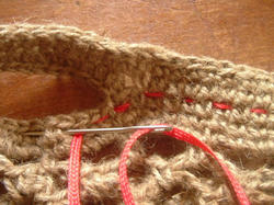 2009/04/25 Category : 作り方:Bag(編み) 麻ひもbagの作り方3 麻ひもbagの作り方2からの続き。。。飾りの紐を通します。(幅は5㎜程度のもので長さ約120㎝あれば。。。)細編みの目を一目ずつステッチの要領で刺して行きます。一周、刺し終わったら 内側で紐の端を まつって始末し完成。次は内袋を作っていきます。。。(ミシン、ロックミシン使用)内袋は縫い付けるタイプをつくりますが、こちらの編みあがりサイズで製図して作っています。(ぺたんこに置いて幅42㎝ぐらいです。)麻ひもBagの作り方4に続く。。。 にほんブログ村[0回]