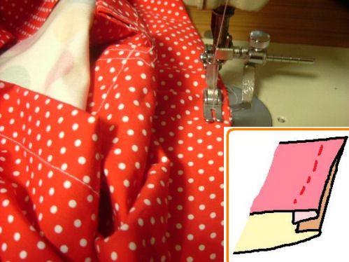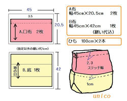 2009/04/25 Category : 作り方:Bag(編み) 麻ひもbagの作り方4(内袋) 内袋の作り方 (材料と製図)底布の脇とマチを一緒に縫う為の印つけと折り方です。印つけは3mm程切り込みを入れるノッチという方法です。手軽に便利なのでお試し下さいませネ1.底布Bを外表に半分折り わになっている所から7cmの箇所で二枚重ねたままノッチを入れます。(3mm程ハサミの先で ちょんと 切り込む)2.ノッチを合わせて折たたむ。3.折り端を揃えて縫い(縫い代1cm)、両脇縫えたら ロックミシンをかけます。口布Aの脇にもついでにロックミシンをかけておきます。2枚あるので合計4か所4.口布Aの両脇を縫う。中表に合わせ7cm残して縫います。5.アイロン作業縫い代を割り、ついでに、ひも通し箇所も折っておきます。(1㎝、2.5㎝の三つ折り)アイロン定規を使うと便利です♪作り方と使い方はこちら アイロン定規6.脇の7cm明きに図のようにステッチをかけ、ひも通し箇所も縫います。麻ひもbagの作り方5(内袋)に続く。。。 にほんブログ村[0回]PR