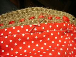 2009/04/25 Category : 作り方:Bag(編み) 麻ひもbagの作り方5(内袋) 7、出来たパーツを縫い合わせる中表に重ね、脇と脇とを合わせて待ち針を打ち、さらに間間に必要なだけ打ちミシンで縫います。待ち針は、まず印となる箇所から合わせて打ち(この袋の場合、脇)図の順番で半分の距離ずつ合わせて間間に打って行きます。8.ぐるりと縫い終わったら、縫い代をまず1度割ってアイロンをかけ、布を内側に倒し継ぎ目を山にして折る。アイロン作業終わり☆9.折山から1cmのところにステッチをぐるりかけ、ミシン作業が終わりです。10、あとは、待ち針で止めてステッチ用の(シャッぺ30番など)太めの糸で まつります。次回は、ラスト! 持ち手を革でくるむ方法を近々に。。。 にほんブログ村[0回]
