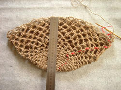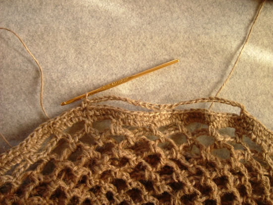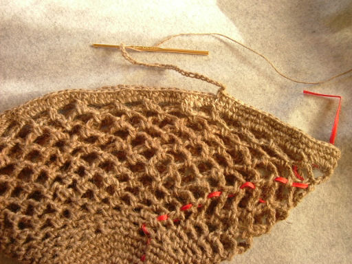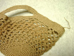 2009/04/06 Category : 作り方:Bag(編み) 麻ひもbagの作り方1 バッグチャーム付き麻ひも編みバックの作り方を何回かに分けて、ぼちぼちの更新になりますがUpしていきたいと思いますので良かったら、作ってみてください☆かぎ針は7号で麻ひもは100円SHOPで3個入りのを使ってみました。細編みをぐるぐる9段編み終え、14㎝弱ぐらいの大きさです。ネット編みまで編みました。19㎝ぐらいってトコでしょうか。。。今日は、ここまで!(画像クリックで大きく見られます)このバッグの編み方は、前回ブログにUPしている手芸雑貨メーカーのクローバーさんのレシピをアレンジものを編み図に起こして描きました。 マルシェバッグクローバーさんのHPには他にも素敵な無料レシピが☆http://www.clover.co.jp/ にほんブログ村[2回]
