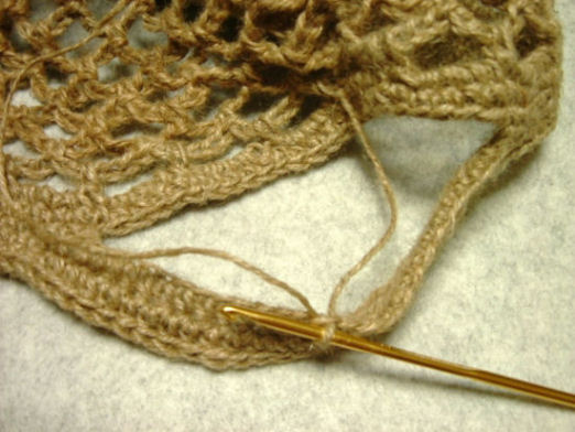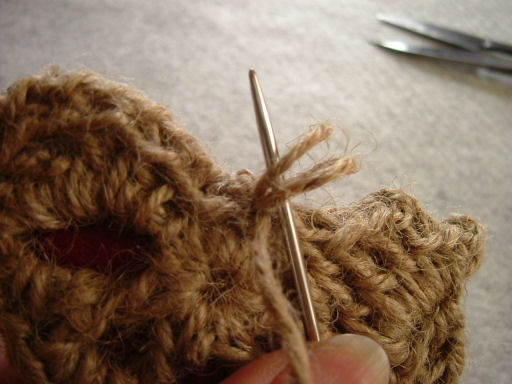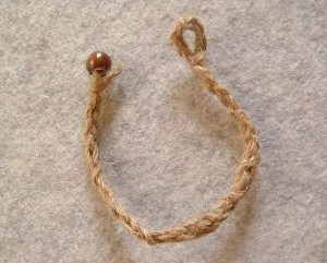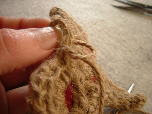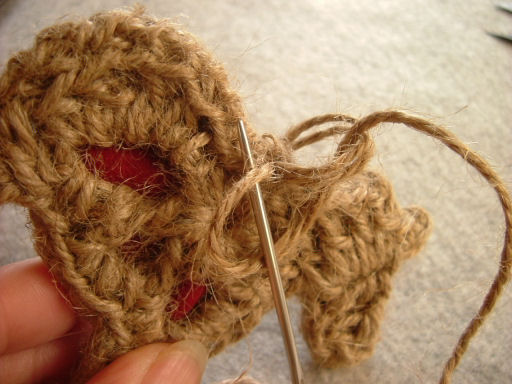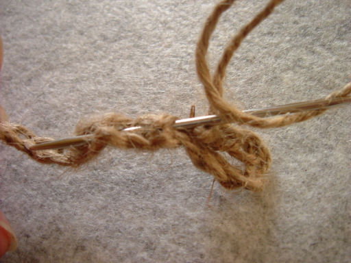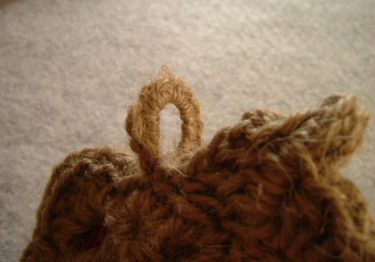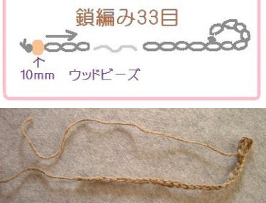 2009/04/20 Category : 作り方:小物(編み) bagチャームの作り方3 チャームに通す ひもを作ります。1.編み始め、糸10cmほどの位置から鎖33目編み、7目戻った所に引き抜き編み。終わりの糸を30cmほど残して切る。(あとでウッドビーズを通すので糸を余分に残しておきます)2.とじ針で残り糸を編んだ鎖目通して行き 編みはじめの所まで戻る3.残り糸と編みはじめの糸 2本を揃えウッドビーズを通して結び 余分な糸を切って完成。 にほんブログ村[2回]