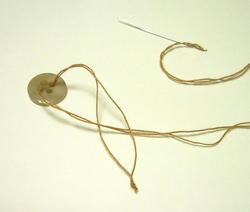 2008/10/27 Category : ちょっと技 ボタン付け たま結びを隠すボタン付け。針に通した先の糸をぐーうと引っ張り、おしりの糸と合わせてたま結びして、糸を2本どりにします。ボタンに針をとおし終わったら、糸が、わっかになってるところに針をくぐらせます。ぎゅーっと糸を引っ張って、この状態でボタンを付けるとたま結びが隠れるので仕上がりが綺麗です。 にほんブログ村[0回]