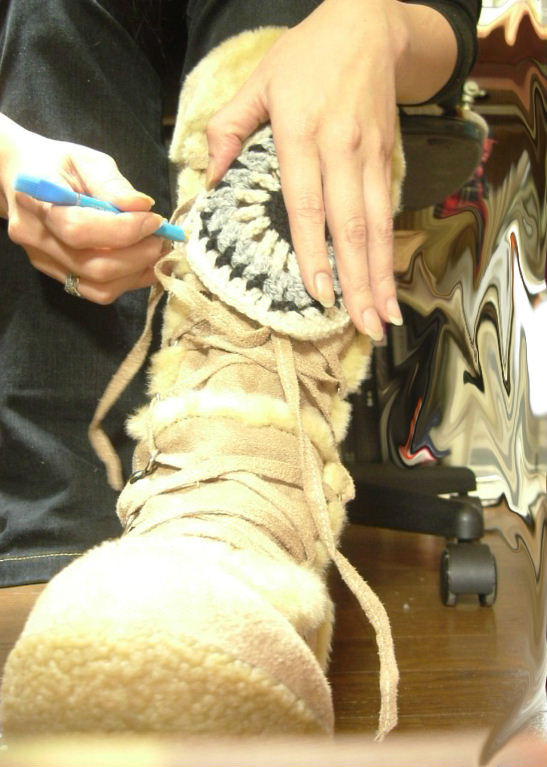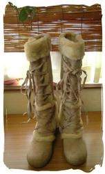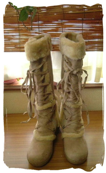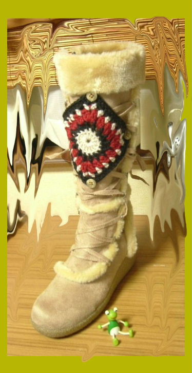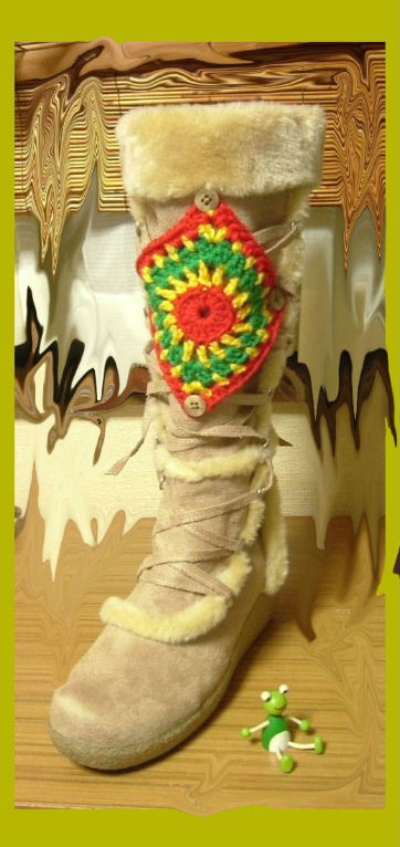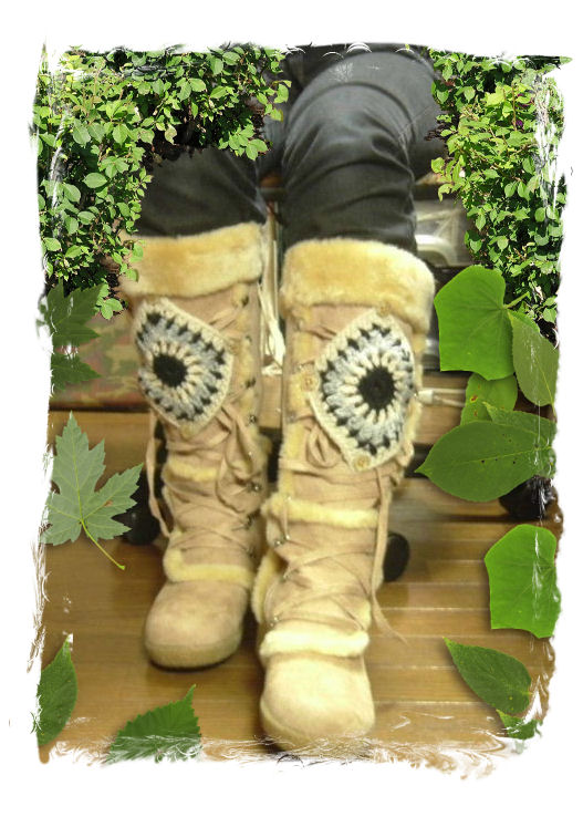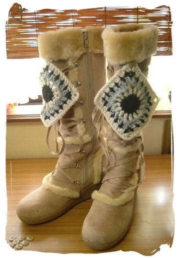 2008/10/26 Category : カスタム ブーツカスタム 用意するもの1. 「履いたら、いまいち・・・」というブーツ。 可愛いのですが。。。いまいち2. 「取り敢えず可愛いから編んでみた♪」 というモチーフと 直径1.5㎝のボタン8個。イメージは、このよな感じ。。。ブーツのセンター位置に、まず一個 ボタンを付けます。まだ、未完成。 後日に続きます・・・・ にほんブログ村[0回]