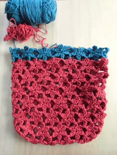 平たい物も作れたらと、往復編みでやってみたのですが・・・