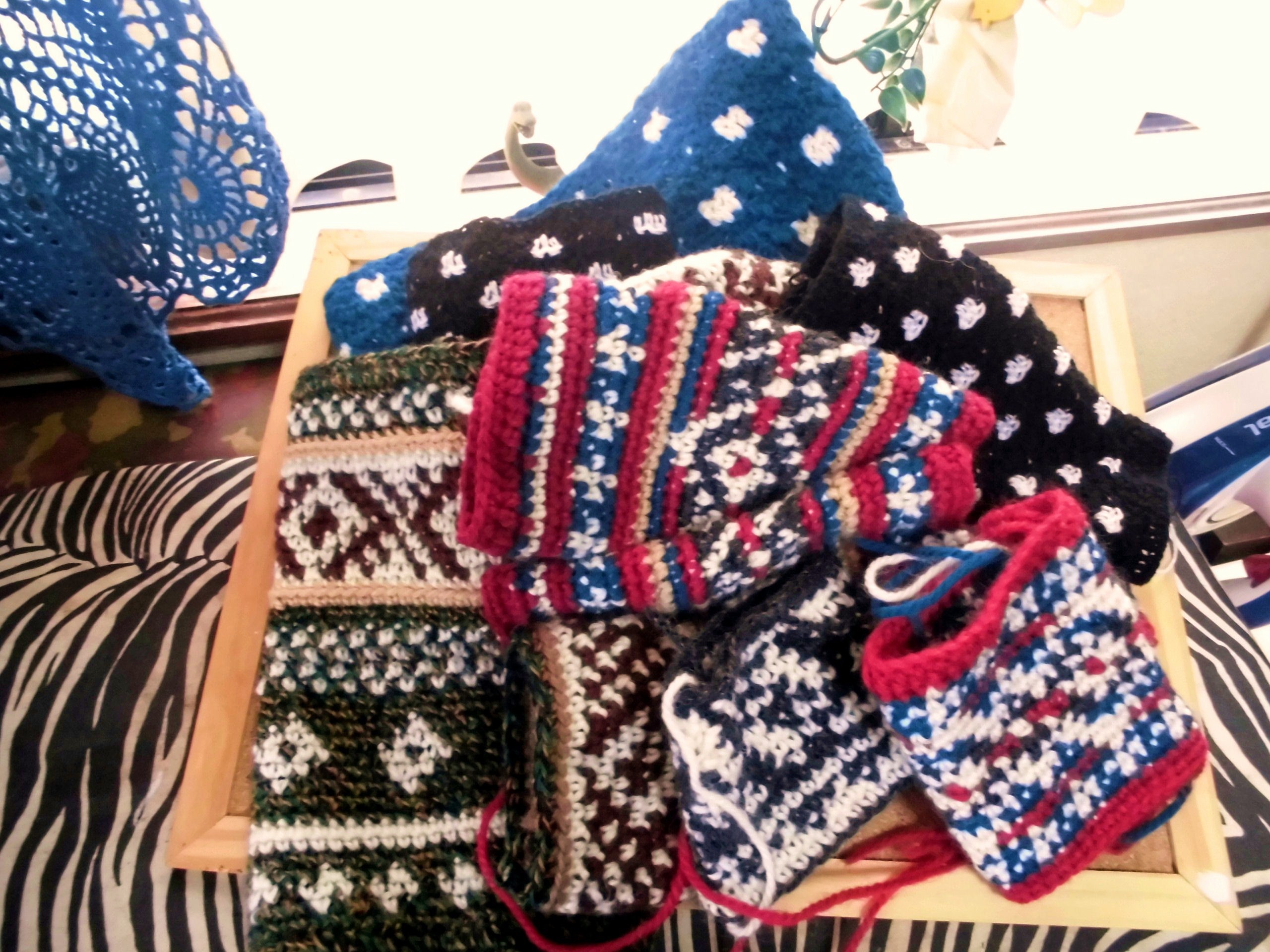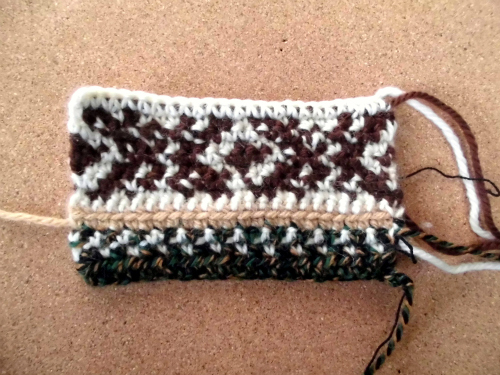かぎ針の編み込み、模様の画素数が粗いってゆうか。。。