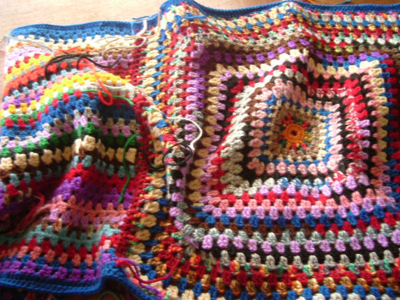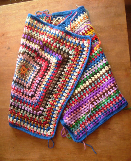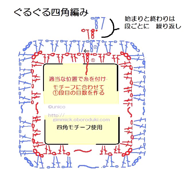 2010/03/11 Category : 編んでみました! 膝かけ、その後 ちょこちょこと合間合間に編んでいた膝かけですが、進んでいくうちに余り糸の色種が少なくなり・・・「配色が繰り返しになってしまうなー(-_-;)」と行きづまりまして・・・結局、半分ほどいて ぐるぐるの四角編みとドッキングしました!糸始末がまだ残っていますが、一応完成!(笑)膝かけとしてはあまり良ろしく無い柄配置(笑)腰巻スカート優先柄配置に。。。なってしまいました(^_^;)それでいて、もう春です(;一_一)完成したのは良いが仕舞わないといけませんネ今度の冬は、お家で がんがん巻いて温かく過ごしたいと思います(笑)ぐるぐる四角編みは角で増やして、どんどん大きく編めます。今回、編みっぱなしにしていた四角いモチーフから糸を付けて編んでみました!良かったら、お手持ちの四角モチーフでぐるぐる編んで何か作ってみて下さいませネ☆簡素な編み図ですが・・・UPしときまーす(●^o^●)にほんブログ村お越し下さりありがとうございます☆ つづきはこちら にほんブログ村[0回]