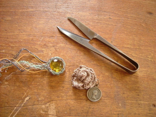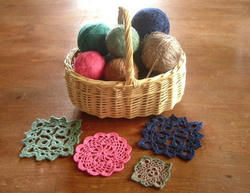 2009/08/20 Category : 編んでみました! 糸に戻して、編んで遊ぶ 要らなくなったニットウェアが数枚。。。ほどいて糸に戻しました。ほぼ、ハイゲージのニットものだったのでほそーい糸がたくさん収穫できました (笑)素材も、レーヨン、綿、毛、ポリ、ラメ入り、とバリエーションも豊かです(●^o^●)引き揃えや、2、3本どりで使えるように 数個にわけてぐるぐる巻いて、ほどいて、ひたすら玉に。。。 ほどいた糸は、案の定 もしゃもしゃですが・・・糸くせを戻してまで使うよな糸では無いし、ちょっとした雑貨に使うしはたまた「戻るのだろうか?」という素材もあるので(^_^;) もしゃもしゃを、「素敵な糸だね」となだめながら 編みます(笑)最近はちょっと忙しくて、気分転換に時折 ニットパーツなどを編んだりしています。前回のストールは完成しました♪(●^o^●)大きい薔薇はバックに付けようかな♪。。。と 思案中。。。にほんブログ村どうも有難うございます☆ にほんブログ村[1回]